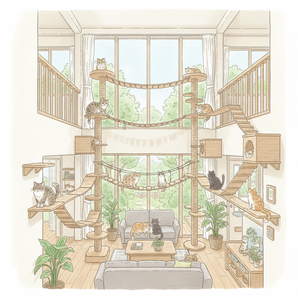 猫が上下左右に動き回れる環境は、ストレスの軽減にも効果的です。