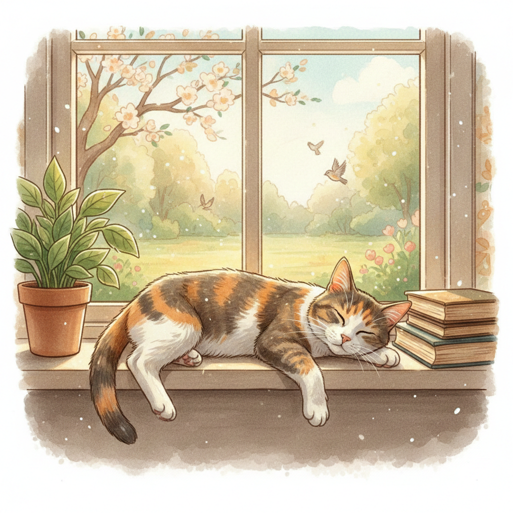 窓辺は日向ぼっこができる特別な場所であり、
